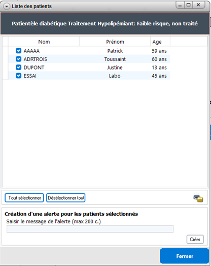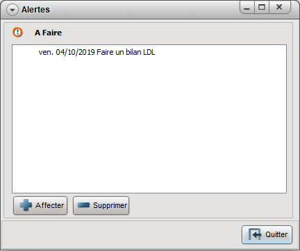 À l'ouverture d'une nouvelle consultation pour le patient sélectionné par l'alerte, l'alerte s'affiche.