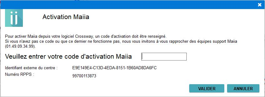 La fenêtre d'activation Maiia s'ouvre, saisissez le code d'activation fourni par le support Maiia.