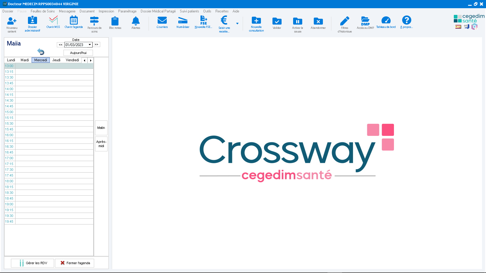 | . | Aide en ligne Crossway v24.01 > L'agenda Maiia > Accéder à l'agenda en ligne Maiia > Depuis l'agenda |