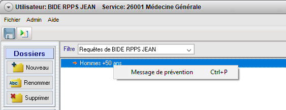 Une fois votre requête de prévention créée, définissez votre alerte par le biais du clic droit sur le nom de votre requête, puis sélectionnez Message de prévention.