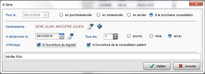 La fenêtre de paramétrage d'un A Faire apparaît. Complétez-la comme cela vous l'a été expliqué ci-dessus.