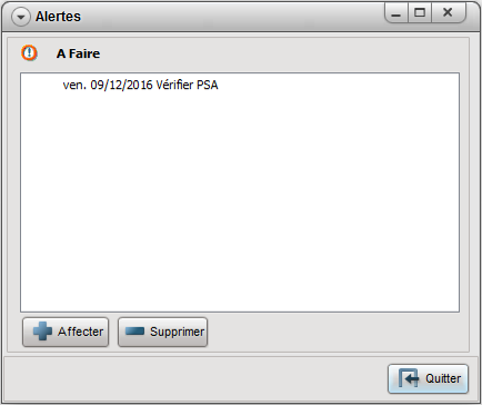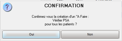 Validez, puis confirmez la création de l'alerte A Faire.