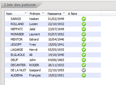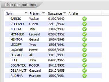 La liste des patients correspondants aux critères de la requête apparaissent. Le pictogramme