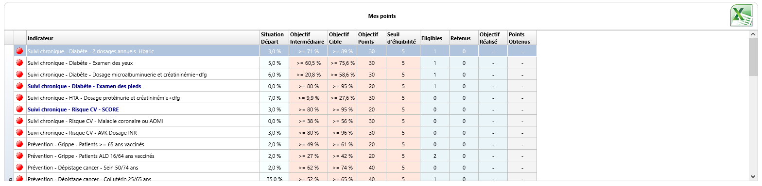 L’objectif Points est le maximum de points auquel vous puissiez prétendre pour un indicateur.