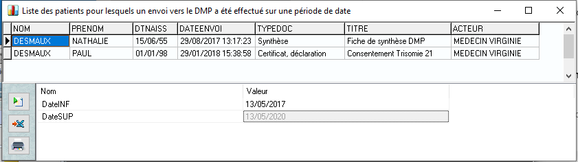 Indicateur : Liste des patients pour lesquels un envoi vers le DMP a été effectué sur une période de date