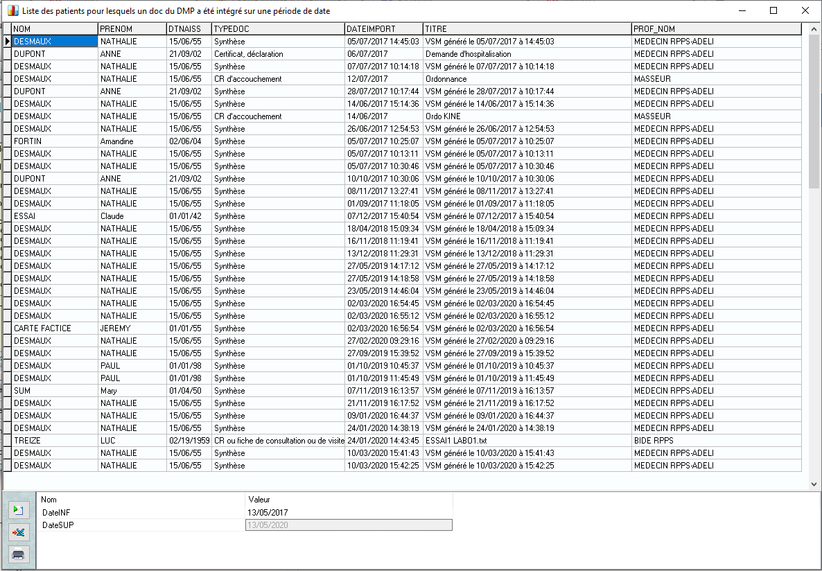 Indicateur : Liste des patients pour lesquels un doc du DMP a été intégré sur une période de date