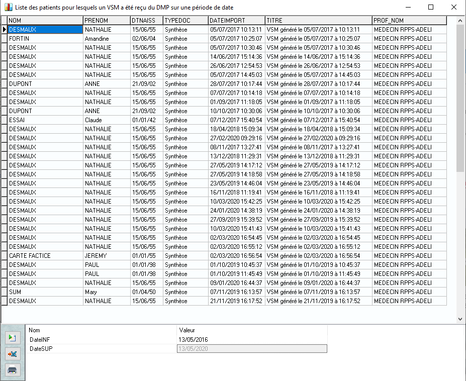 ,Vous visualisez la liste des patients pour lesquels un VSM a été reçu par le biais du DMP durant la période sélectionnée.
