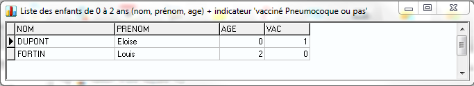 . Vous visualisez la liste des patients de 0 à 2 ans, avec une information sur l'administration ou non d'un vaccin contre le pneumocoque.