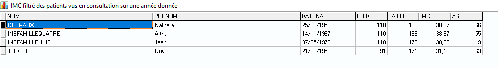 Indicateur : IMC filtré des patients vus en consultation sur une année donnée