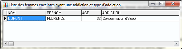 Indicateur : Liste de femmes enceintes ayant une addiction et type d’addiction