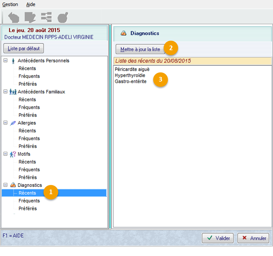 Dans le cas présent, nous souhaitons mettre à jour la liste des diagnostics récemment utilisés :