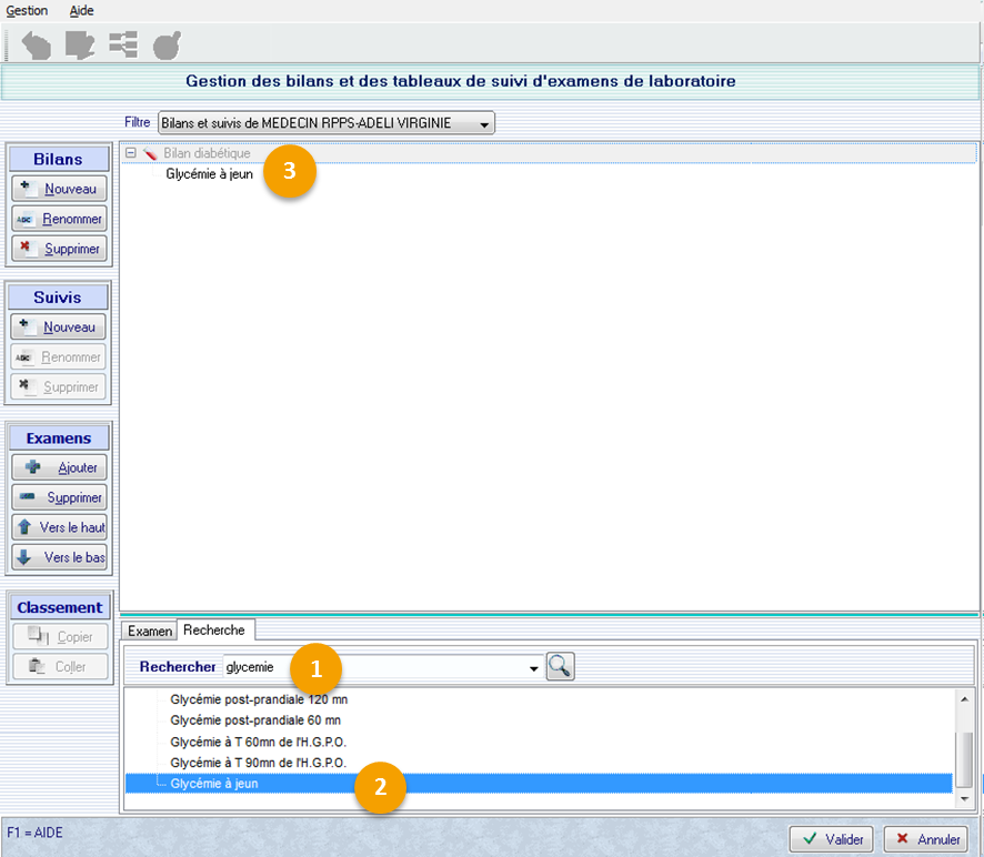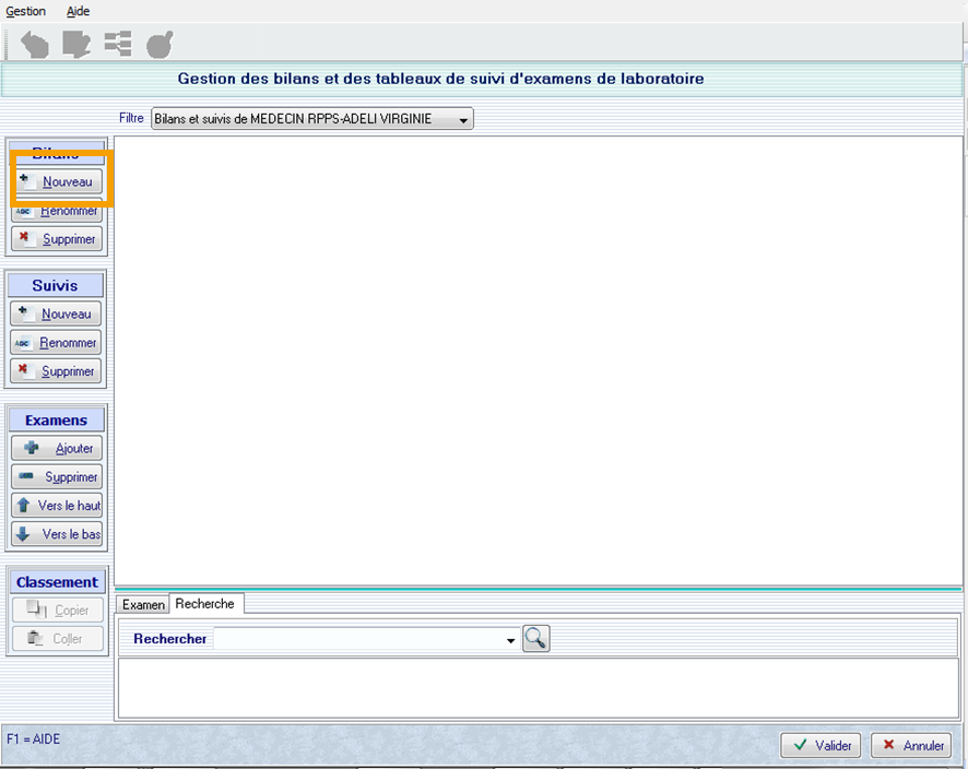 Renouvelez, les étapes précédentes avec tous les examens que vous souhaitez ajouter à votre bilan type.