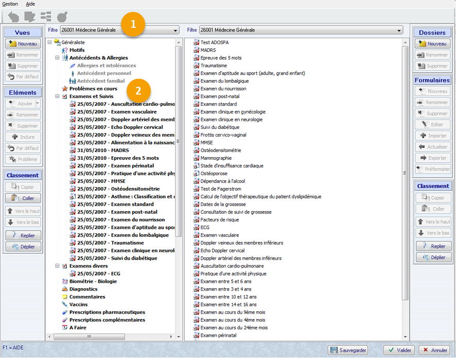 Filtre Nom de votre spécialité (exemple : 26001 Médecine Générale),