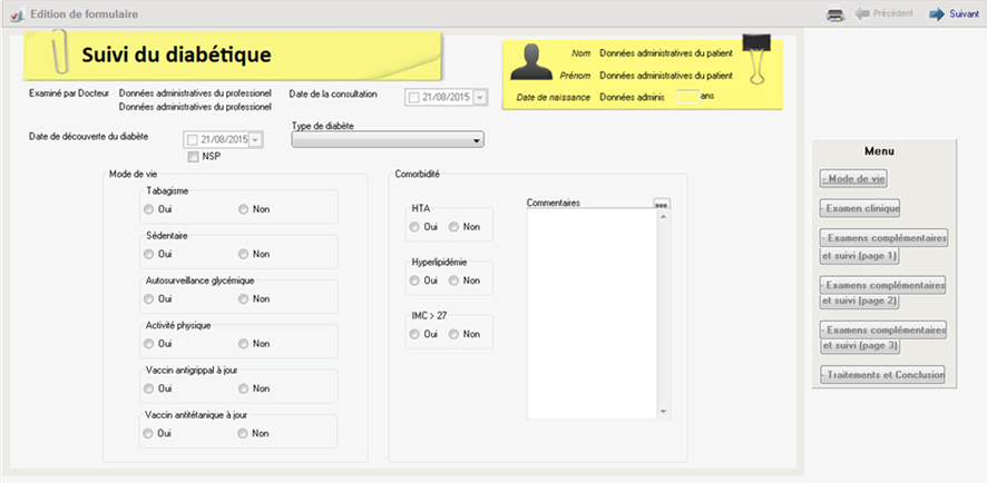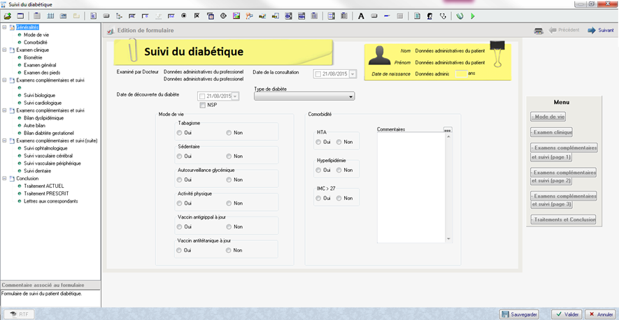 La zone d'Édition du formulaire, qui vous permet de visualiser les différents champs qui vous aideront à la saisie de votre consultation,
