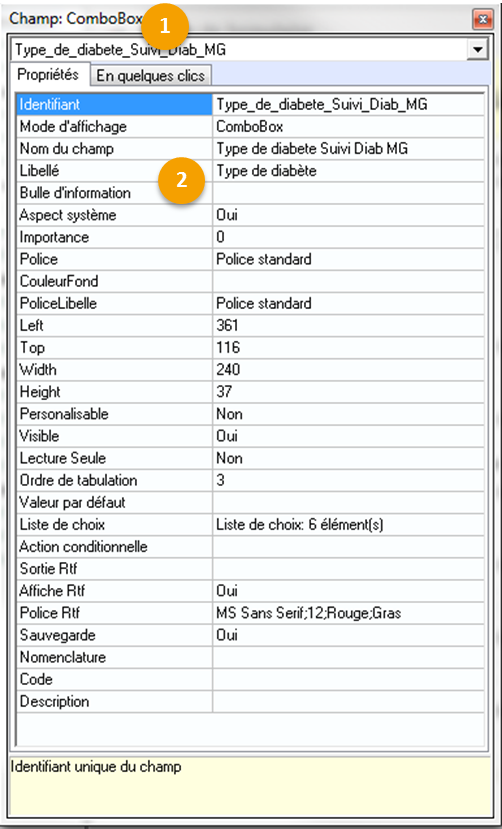 Légende : (propriété disponible pour le champ de type Tableau) permet de déterminer une légende et de l'utiliser lors de la génération du compte rendu Rtf.