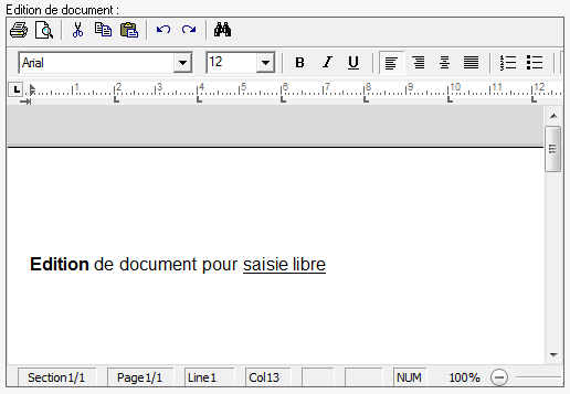 | Édition de document : permet d'insérer un éditeur de texte pour une saisie libre. | ![]() |