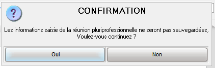 Un message d'information peut s'afficher dans le cas où la fenêtre de Gestion des réunions pluriprofessionnelles est réduite et que vous quittez Crossway ou que vous changez d'utilisateur.