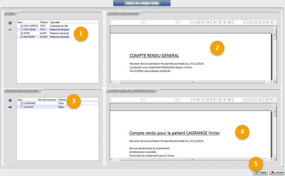 Une fois la réunion validée, les comptes rendus des patients sont également validés et ne peuvent plus être modifiés. |