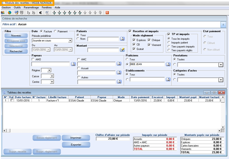 Le Nomadisme Recettes vous permet de faire vos recettes hors cabinet.