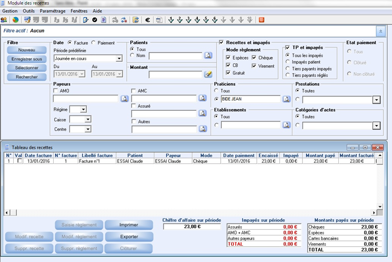 En visite, la fenêtre du module des recettes se présente comme ceci :