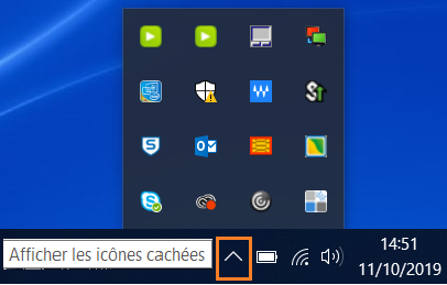 1) Depuis la barre des tâches, en bas à droite de votre bureau, cliquez sur la flèche pour afficher les icônes cachées. |